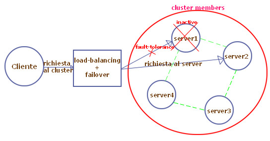 I clienti che in successione richiamano il nome associato al cluster otterranno di vedere eseguita la loro richiesta dai diversi server membri del cluster.