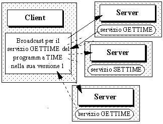 una RPC con indirizzo internet di broadcast e un unico numero di porta destinataria