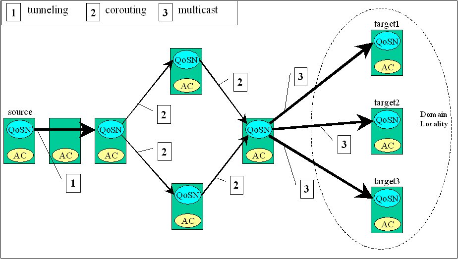 Figure. Tunneling, corouting and multicast in the VoD service (click here for a larger view of the picture) |