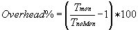 where TMon and TnoMon are the average completion times of the Java benchmark on unloaded targets, respectively, with and without the MAPI tool in execution. Let us note that unloaded targets represent the worst possible case for Overhead%. In fact, as soon as the load increases, TnoMon grows faster than Tmon, and their ratio consequently tends to decrease. This has been validated by taking Overhead% measurements with several general-purpose benchmark tests running: the measurements have confirmed the expected behavior, with an average decrease of about 1.0-1.5% of the Overhead% parameter in conditions of average load.